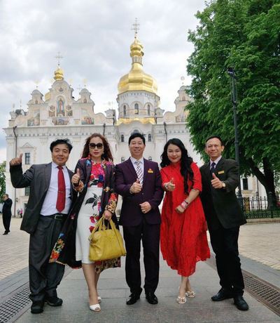 总统先生与马晓薇亲切交流并合影留念 5月22日中午,代表团在团长刘瀚锴、副团长李晓的带领下,在部长秘书安东妮和优秀中文教师伊万娜以及部长助理尼古来的陪同下,应邀前往乌克兰-中国协会,受到了乌克兰国家首任总统列昂尼德・克拉夫丘克先生的热烈欢迎和亲切接见!总统首先与马晓薇等人逐一握手并欢迎中国文化艺术-商贸之旅代表团访问乌克兰同时作客乌克兰-中国协会。