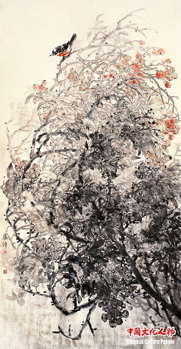 卢伟看中了元代开启的“墨花墨禽”之门,把文人水墨画的写意精神融进周密不苟的工笔画法之中,这是一条前人没走完的艺术之路,也是历史文人尚未思考的空间,让水墨走进工笔,让工笔拓宽意境,努力创造中国花鸟画一种新的语体,新的语境,这就是摆在卢伟面前的课题。近年来,他一直在这条道路上探寻、尝试、并获得成功。