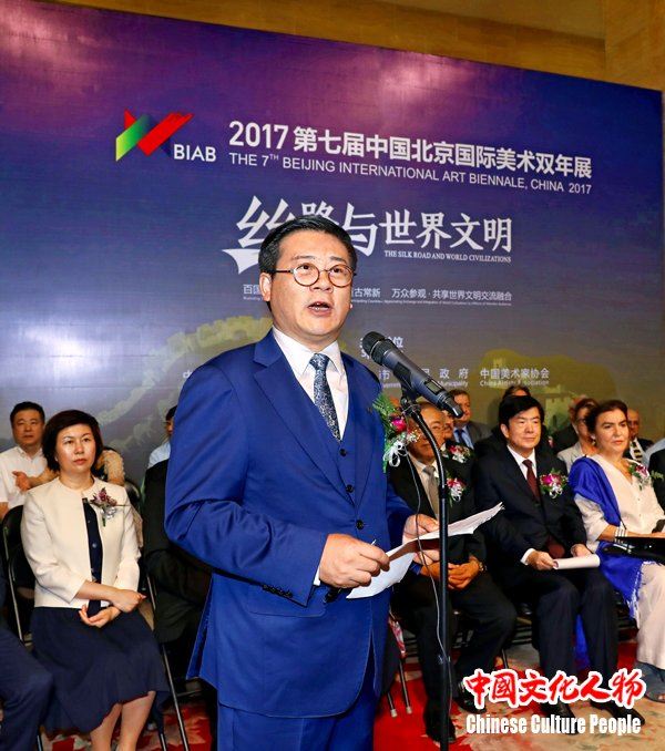 中国美协分党组书记、驻会副主席兼秘书长徐里主持“2017・第七届中国北京国际美术双年展”开幕式