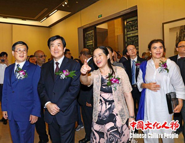 中国美协分党组副书记、副秘书长、巡视员陶勤向中国文联党组书记、副主席、书记处书记李屹,希腊文化体育部长莉迪亚・考尼朵,中国文联党组成员、副主席、书记处书记左中一,中国美协分党组书记、驻会副主席兼秘书长徐里等领导及艺术家嘉宾介绍展览情况