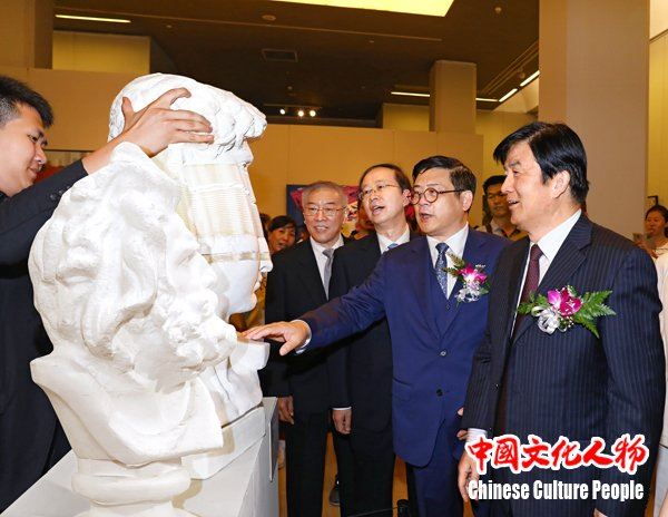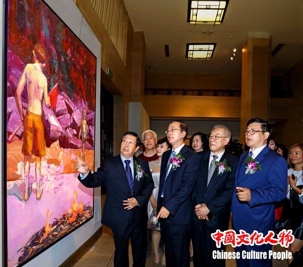 中国文联党组书记、副主席、书记处书记李屹,中国文联党组成员、副主席、书记处书记左中一,原中国侨联主席、中国侨联顾问林军,中国美协主席刘大为,中国美协分党组书记、驻会副主席兼秘书长徐里等领导在展览作品前与艺术家亲切交流