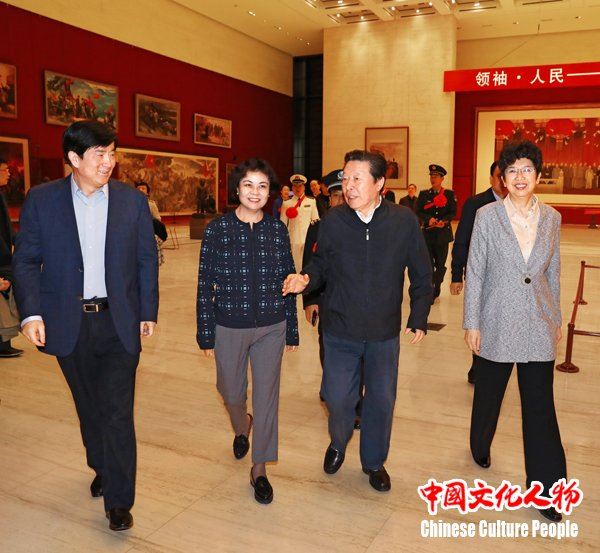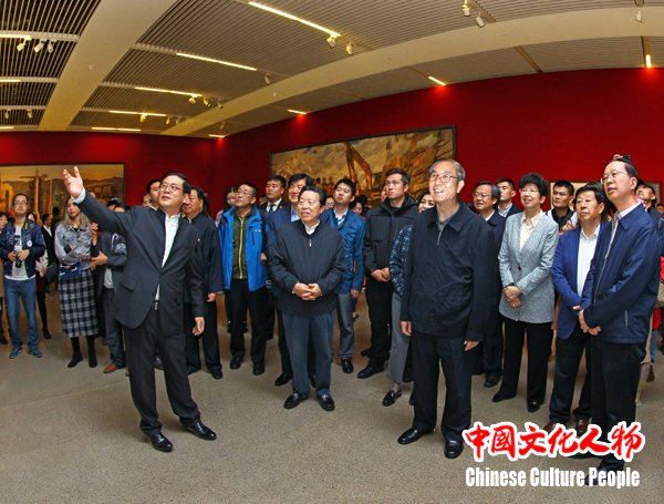 十二届全国政协副主席马飚在中国国家博物馆馆长吕章申,中国美术家协会分党组书记、驻会副主席兼秘书长徐里等领导的陪同下步入展厅参观展览
