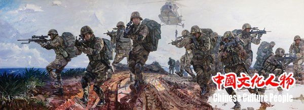 《三栖尖兵―刘》-罗田喜 300cm×800cm 油画 2017