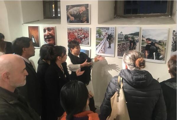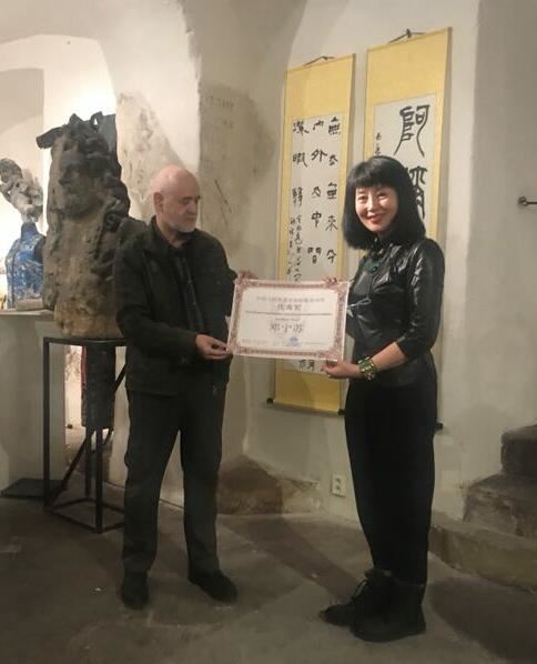 据埃中新闻网讯(肖威) 由中欧文化艺术交流联合会、布拉格美术家协会和埃中新闻网共同主办,北京凤云门文化传播有限公司协办的《当代中国艺术家作品布拉格邀请展》于10月21日在捷克首都布拉格开幕。中欧文化艺术交流联合会会长李祥旭先生,捷克美术家协会代表 Pavel Humpolec 、布拉格 Galerie Lapidarium 美术馆馆长 aida maluda 以及捷华协会代表 Kuzel 、捷克-中国文化艺术交流促进会会长李梦玲女士中欧文化艺术交流联合会秘书长程涛先生等嘉宾出席了开幕式。