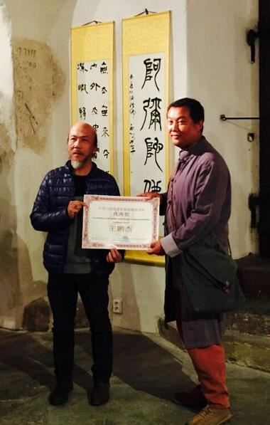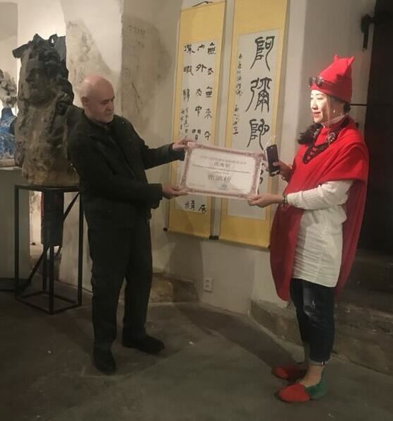 书法家马玉宝代表艺术家发言,他说很高兴和艺术家朋友受邀来捷克展出作品,东西方文化都有着独特的魅力和内涵,他乐于见证此次文化对话。开幕式上,埃中新闻网总编王永鸿介绍了每位参展艺术家,主办方向参展艺术家颁发了证书。