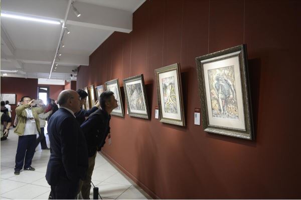 “跨文化视野中的意大利当代艺术展”开幕,参观展览(杨华峰摄影)