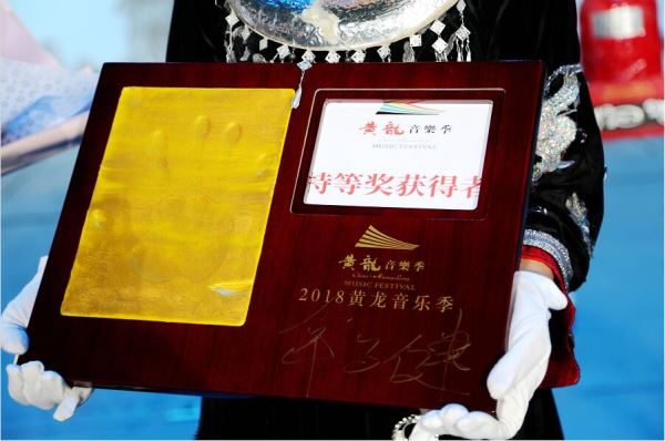 8月10日上午,中央音乐学院青年钢琴手韦子健、山东潍坊7岁琴童刘项印分别获得2018黄龙音乐季钢琴大赛专业组和业余组特等奖。黄龙音乐季创始人、组委会秘书长叶文智,肖邦国际钢琴大赛评委会主任、黄龙音乐季钢琴艺术周评委会名誉主任波波娃分别为两名选手颁发50万和30万艺术发展资助金。韦子建、刘项印两位大奖获得者与全体评委还在黄龙音乐季留下了自己的手印,他们的手印将被做成手模,展示在张家界黄龙洞哈利路亚音乐厅。