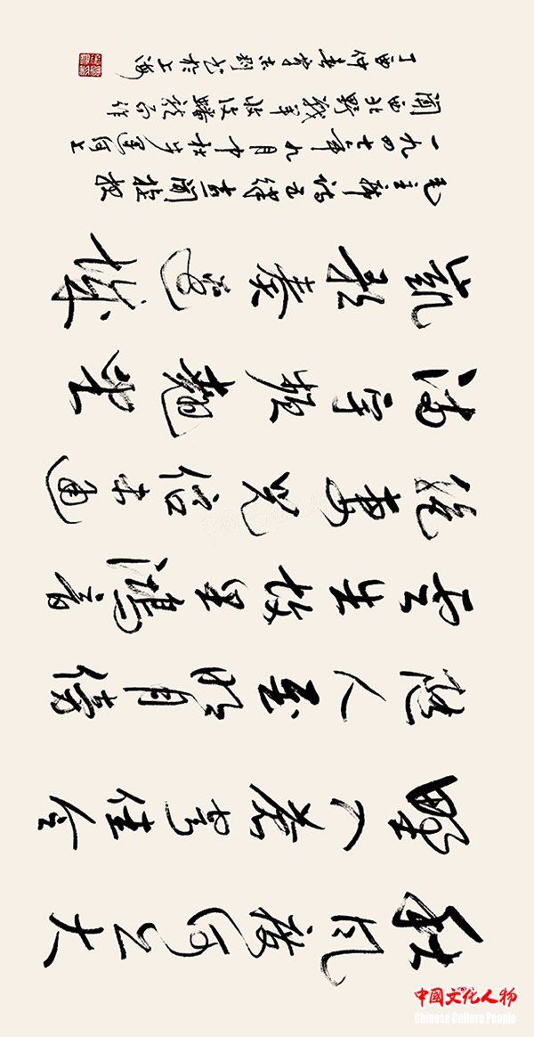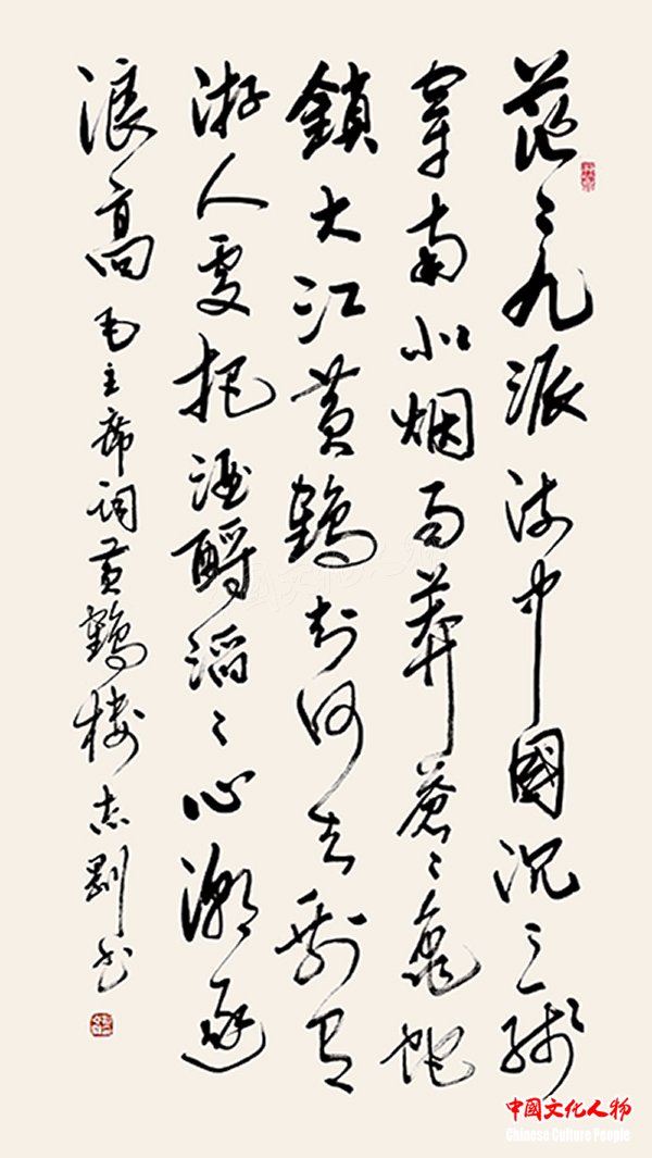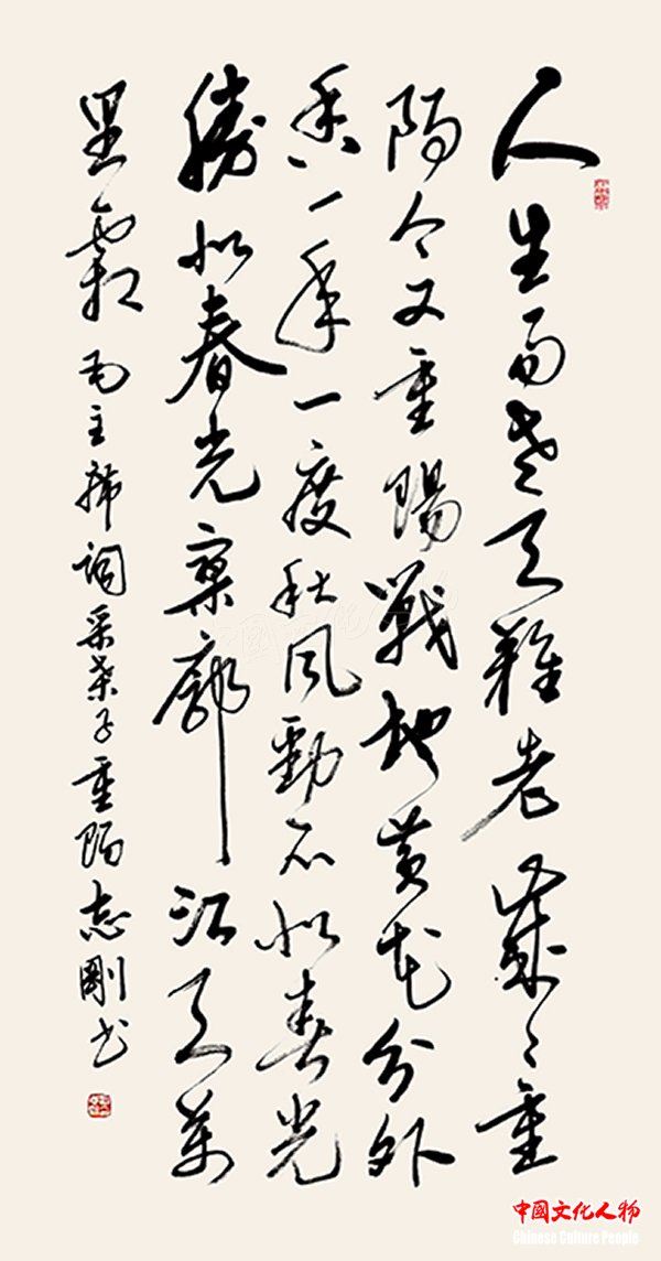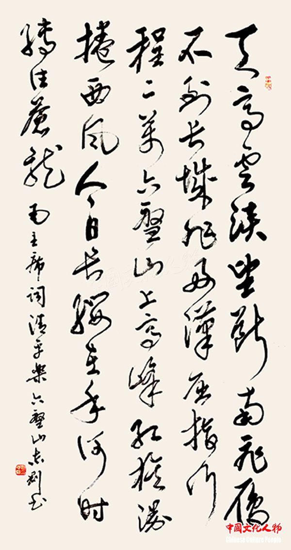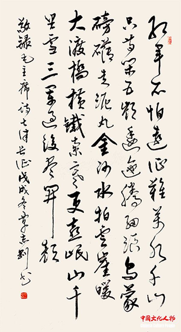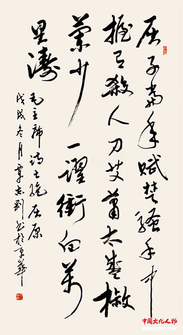 中国文化人物(主编 王保胜)为纪念毛泽东诞辰125周年,深切缅怀毛泽东同志的丰功伟绩,学习他的光辉思想、崇高品德和革命风范。由中央数字电视书画频道、中国文化人物杂志社主办的“激扬文字——纪念毛泽东诞辰125周年覃志刚书毛主席诗词书法展”将于12月25日在北京奥林匹克公园央视书画频道美术馆举行。