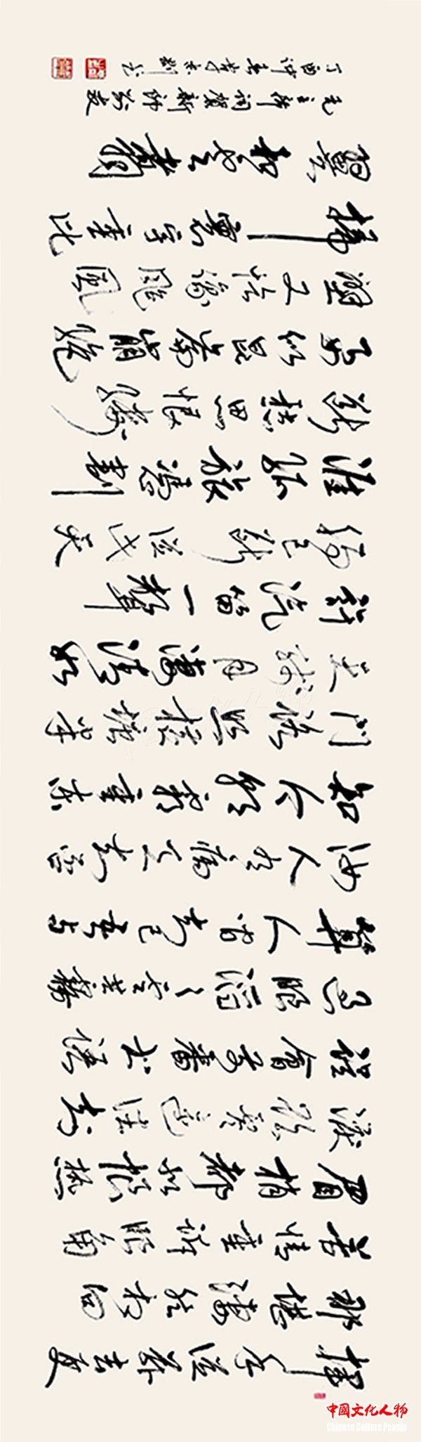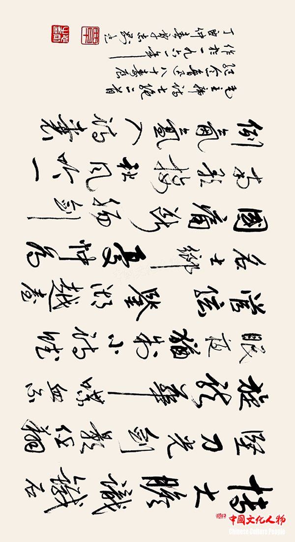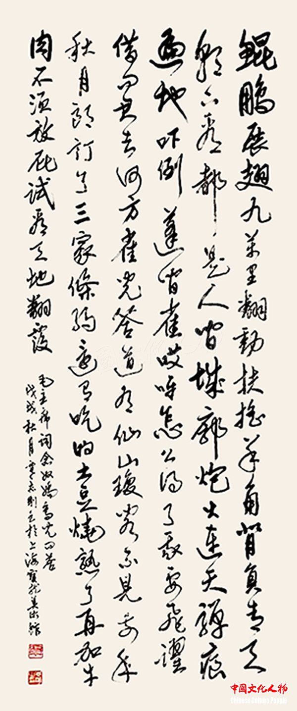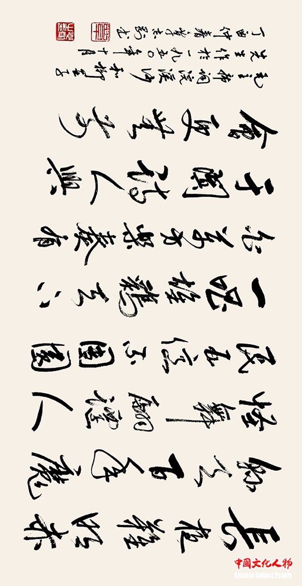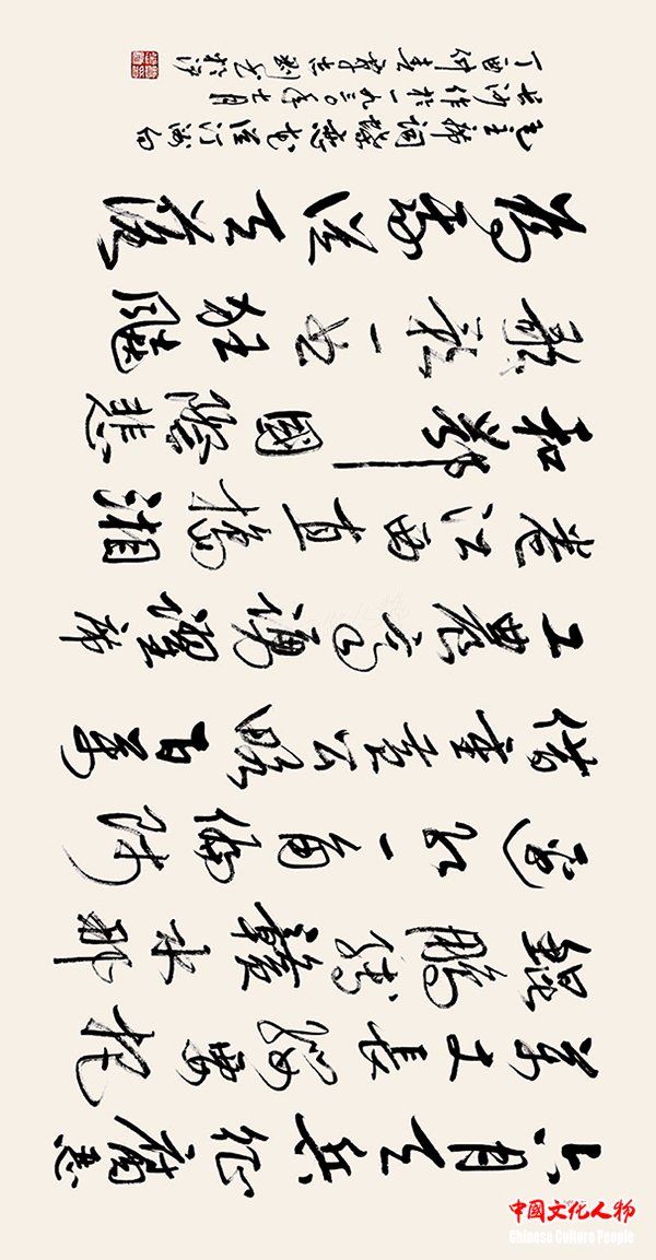 中国文化人物(主编 王保胜)为纪念毛泽东诞辰125周年,深切缅怀毛泽东同志的丰功伟绩,学习他的光辉思想、崇高品德和革命风范。由中央数字电视书画频道、中国文化人物杂志社主办的“激扬文字——纪念毛泽东诞辰125周年覃志刚书毛主席诗词书法展”将于12月25日在北京奥林匹克公园央视书画频道美术馆举行。