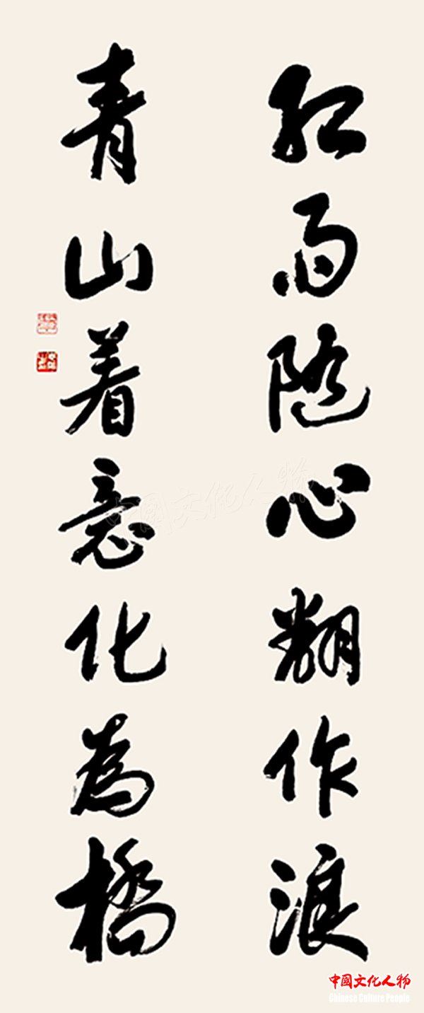 《红雨随心翻作浪,青山著意化为桥》(毛泽东诗句) 覃志刚书法作品 366cm×72cm