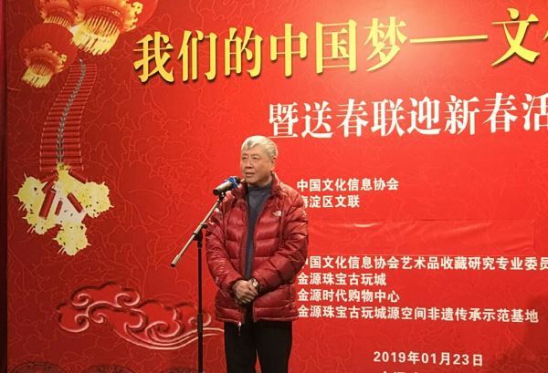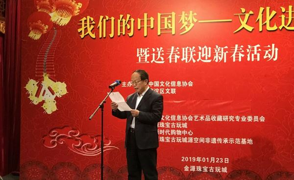 近日,由中国文化信息协会、北京市海淀区文联联合主办的“我们的中国梦—文化进万家”暨送春联迎新春活动,在海淀区金源珠宝古玩城大厅举行。