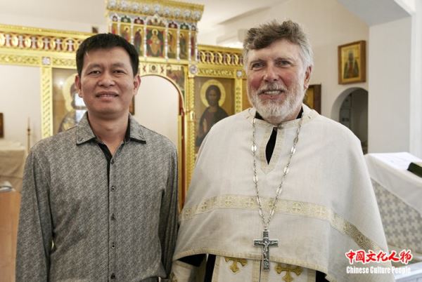 周昌新与库兹涅茨基区尼古拉教堂神父在一起