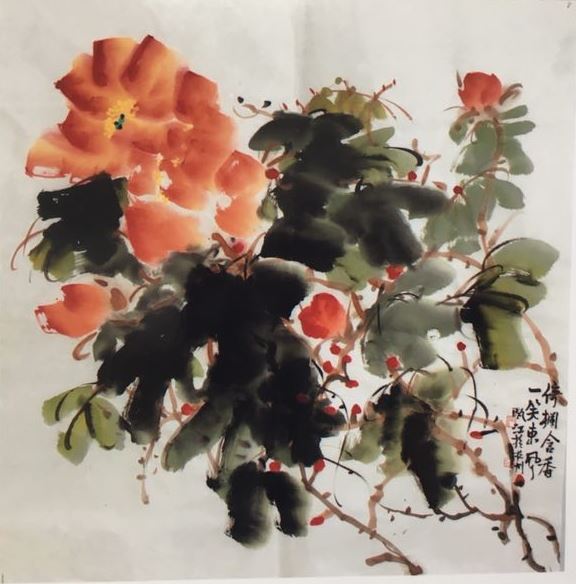 朱国才先生的中国画也已有很深造诣。他以画花鸟为主,兼画山水。书画双线并进殊为不易。朱国才先生说:“书画同源。学好都不容易。书画一个共同的问题是线条问题,所以,练好书法,对画画有益,画画又能促进书法,古今书画名家,都一身兼有书画。”
