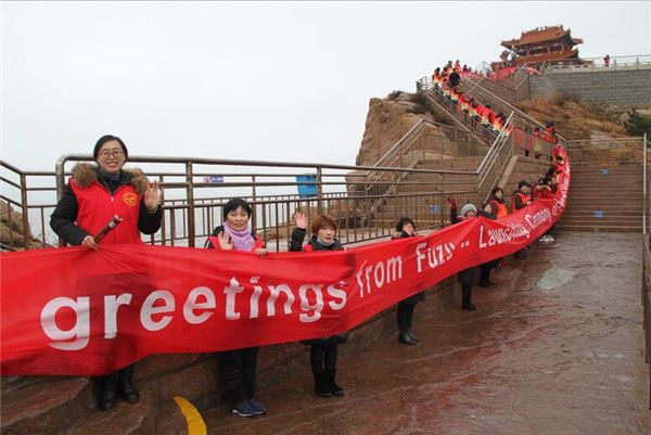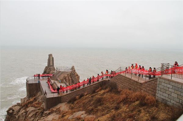据介绍,威海位于山东半岛东端、处于北纬37.5度,恰好处在中国南北平分线上,是世界上最适合人类居住的城市之一,是道教的发源地,也是回归祖国的“七子”之一。威海拥有甲午海战爱国教育基地刘公岛,还有世界上最大的毛主席像章纪念馆,拥有世外桃源、成山头等景区以及充满传奇色彩的神话传说。据威海出土文物考证,早在新石器时代,就有人类在此生息繁衍。活动当天,在成山头景区,由“春节福祖拜年啦”中英文字组成的百米长卷,与当地实景融于一体孵化的长龙更为壮观,无人机航拍记录了全程场景。