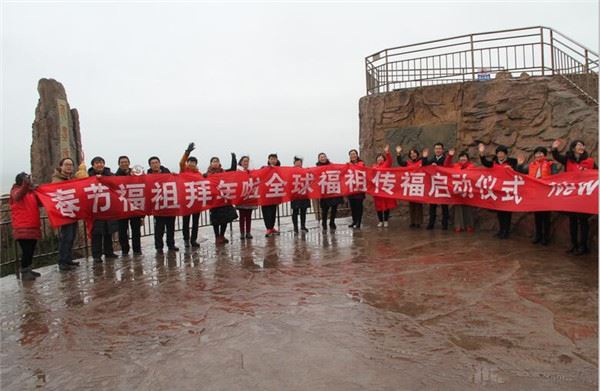 仪式现场,数百名春节福祖“全球福祖传福”志愿者在百米长卷上签名,并向全球华人拜年,向世界各国人民拜年。游客和志愿者还手举春节福祖落下闳拜年图片,激情高呼“春节福祖拜年啦!快乐美满!万事吉祥!”随后,大家争先合影,留下了这一传递快乐、传递吉祥的幸福时刻。