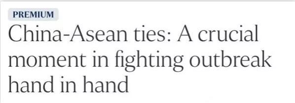 在王毅出访前,新加坡《海峡时报》网站2月18日发表文章称,关键时刻,中国与东盟携手奋战。