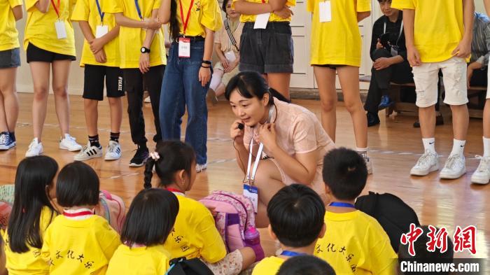 “2023年中华文化大乐园葡萄牙里斯本营”活动于当地时间8月16日在里斯本正式开营。图为授课老师与华裔青少年互动。安徽海联会 供图