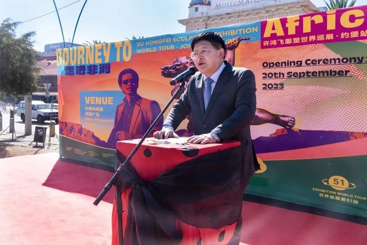 9月20日,南非当地时间下午2点,由广东省艺术品行业协会、广州雕塑院主办,南非“一带一路”发展有限公司、南部非洲中国企业家协会承办的“走进非洲——许鸿飞雕塑世界巡展”在南非约翰内斯堡非洲博物馆玛丽广场隆重开幕。