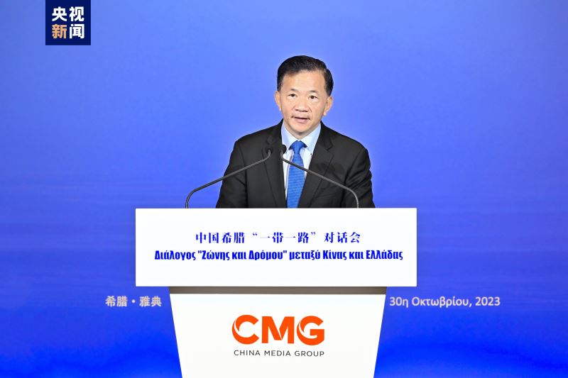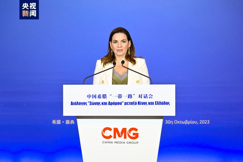 落实高质量共建“一带一路”,推动中希文明智慧照鉴未来。当地时间10月30日,中国中央广播电视总台在希腊雅典举办“山海相通中希辉映:中国希腊‘一带一路’对话会”。希腊前总统帕夫洛普洛斯,中宣部副部长、中央广播电视总台台长慎海雄,希腊旅游部长基法洛扬尼,中国驻希腊大使肖军正出席并致辞。希腊文化部长门佐尼发表视频致辞,希腊阿提卡省长帕图里斯,以及希腊金融航运界、文化艺术旅游体育界等知名人士出席活动。