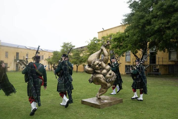 “走进非洲——许鸿飞雕塑展”第二站开幕式就在当天下午的好望城堡举行。