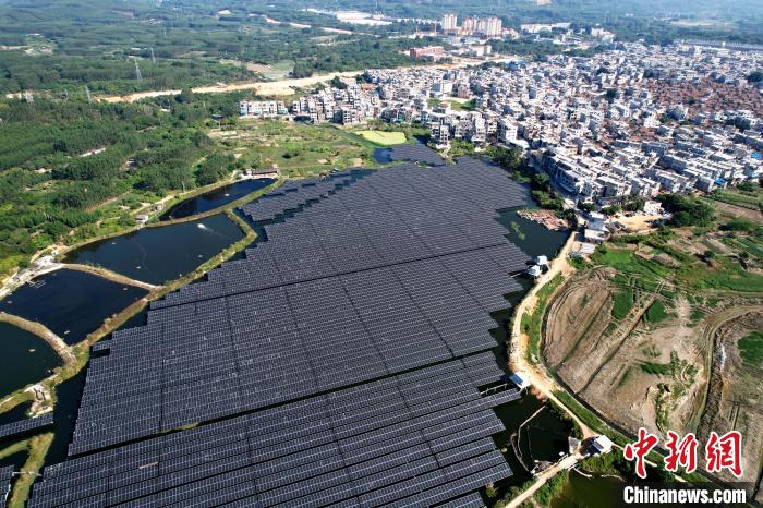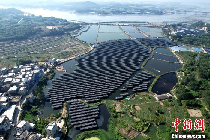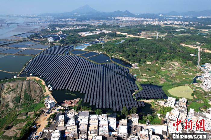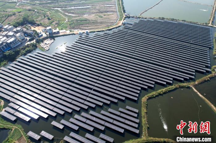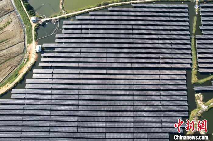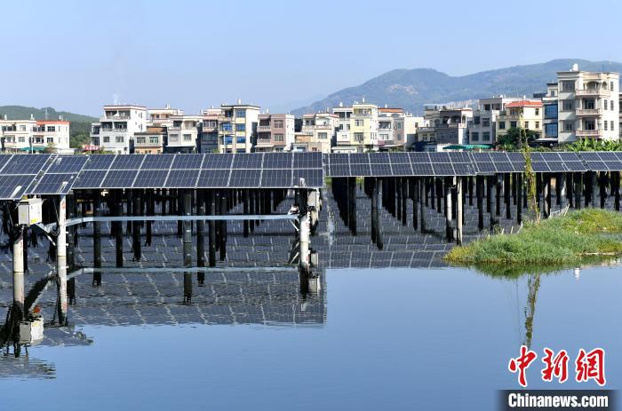 11月5日,参与“行走中国·第六届海外华文媒体漳州行”的25家海外华文媒体代表,参访位于福建漳州云霄县的中核云霄陈岱5万千瓦渔光互补项目。该项目是福建2022年集中式光伏电站首批试点项目之一,“渔光互补”是指渔业养殖与光伏发电相结合,在鱼塘水面上方架设光伏板阵列,光伏板下方水域可以进行鱼虾养殖,光伏阵列还可以为养鱼提供良好的遮挡作用,形成“上可发电、下可养鱼”的发电新模式。