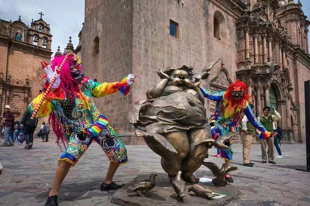 肥女雕塑在秘鲁展出,吸引游人前来合照 受访者提供