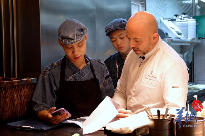 来自意大利的厨师Diego Ottaviani现任广州富力丽思卡尔顿酒店LIMONI意轩主厨,他发现中国南北美食的口味和意大利部分地区的口味有着异曲同工之妙。豆豉鲮鱼炒油麦菜是经典的粤式家常菜,这道家常菜激发了Diego Ottaviani的灵感,创作了香煎鳕鱼配土豆蛋黄酱、焦糖甜椒酱、银鱼柳炒小棠菜。菜式中的鱼油香味,就是通过翻炒银鱼而得到的。中国美食繁多,承载着深厚的人文底蕴, Diego Ottavian表示,希望能从中国本地菜肴中挖掘创作美食的灵感,并运用到意大利菜的烹饪和研发创意中,持续探索意大利菜在中国呈现的方式。