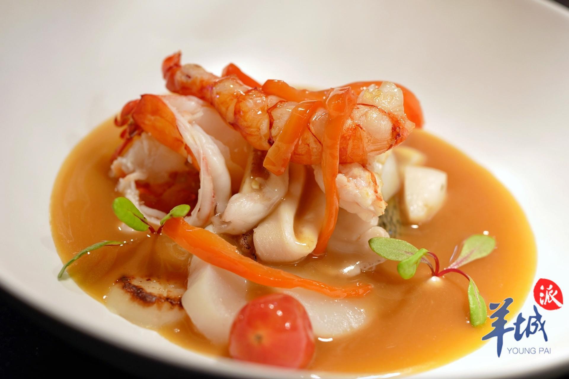 海鲜浓汤将牡丹虾与各类海产品一起炖制,味道鲜美