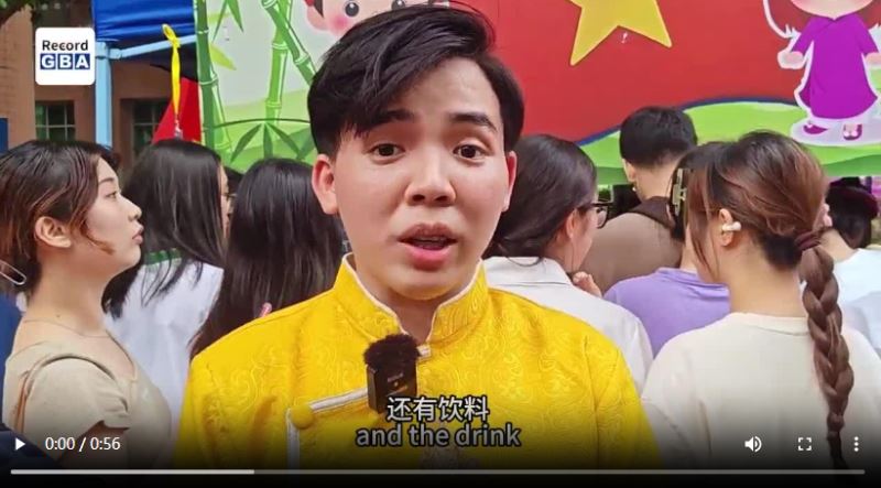 "Olá a todos! Temos promoções! Apenas 12 yuan por um rolinho primavera frito!" No recente 15.º Festival Cultural Mundial da Universidade de Estudos Estrangeiros de Guangdong, os estudantes vietnamitas fizeram de tudo para atrair clientes para a sua banca. O destaque foi o chefe da banca, um estudante vietnamita que aprende chinês há três anos. Ele mostrou os seus conhecimentos linguísticos, deixando toda a gente espantada com o seu domínio do chinês. #artandculture