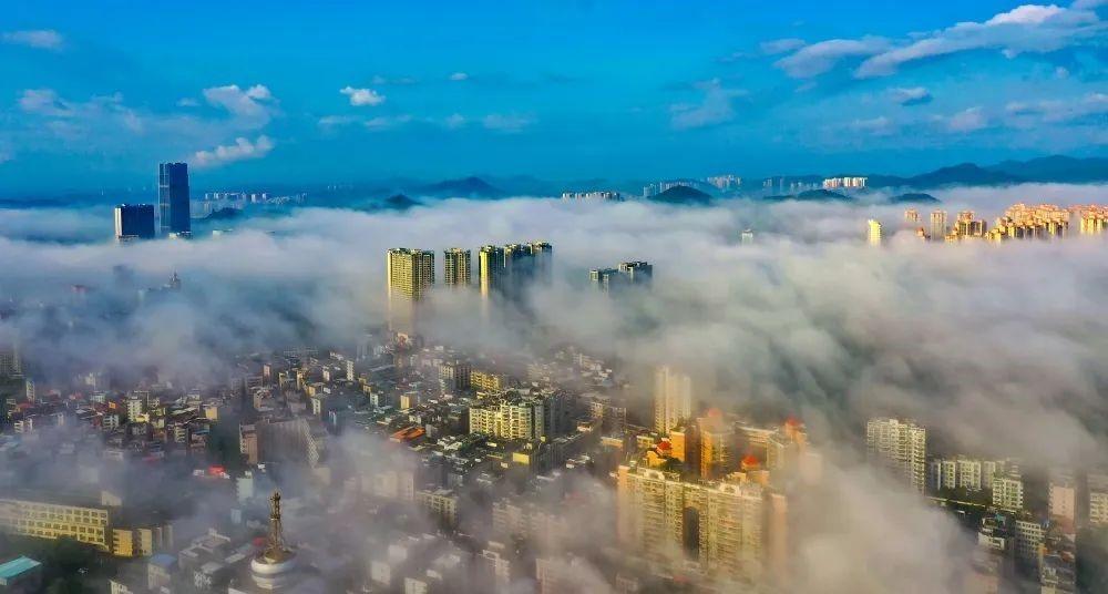 黎明时分,城市大厦被雾气环绕,高层建筑藏匿其中,朦朦胧胧,若隐若现,形成了“城在雾中、雾在城中”的美景。在这个曼妙的季节,山、水、城都在云雾中融为一体,勾勒出一幅清雅秀丽的水墨画卷,不妨卸去心中繁杂事,去看晨雾涌动,尽数出众美景。
