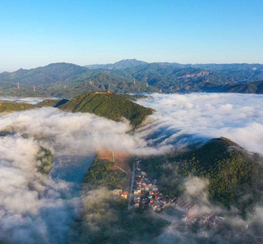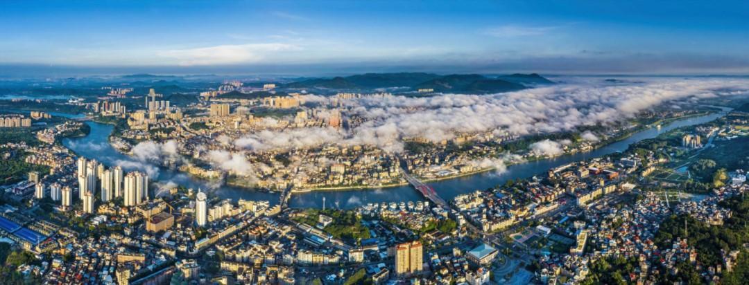 In the early dawn, the city skyscrapers were enveloped in mist, creating a hazy and elusive scene of "city in the mist, mist in the city." In this enchanting season, mountains, water, and the city merge into one in the mist, outlining a picturesque ink painting. Take a moment to cast away the complexities in your heart and witness the morning mist, embracing the extraordinary beauty of the scenery.
