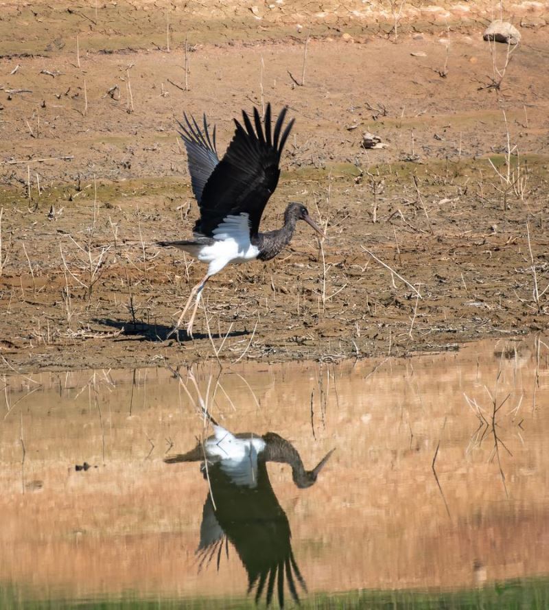 In the winter season, the reservoir of Shuikou Village in Changle Town, Lechang, Shaoguan, welcomes six "special and rare guests." On November 18, bird enthusiasts captured moments of the national first-class protected birds, known as the "giant pandas of the bird world" – the Oriental White Storks and Black Storks.