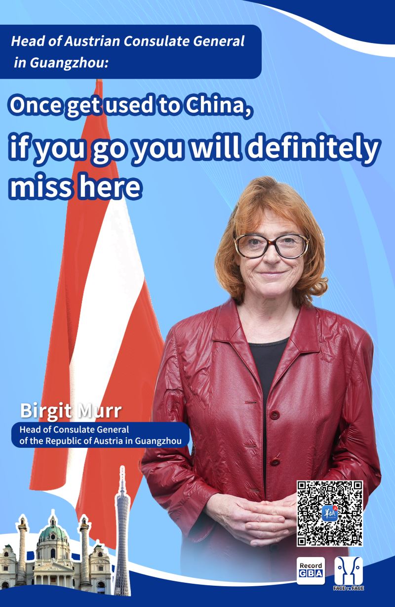 Birgit Murr, a chefe do Consulado Geral da República da Áustria em Guangzhou, é uma velha amiga da China, que viveu e trabalhou em Pequim, Xangai, Chengdu e Guangzhou durante mais de 30 anos, e tem uma profunda afeição pela China e por Cantão.
