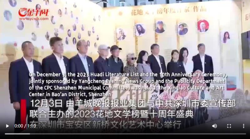 Em 3 de dezembro, a Lista de Literatura Huadi 2023 foi divulgada e a Cerimónia do 10.º Aniversário da lista realizou-se em Shenzhen. Lin Bai, Zhang Huiwen, Huang Canran, Xiao Fuxing, Meng Fanhua e Zhou Jianing foram galardoados este ano com os prémios "Escritor Anual" em seis categorias.
