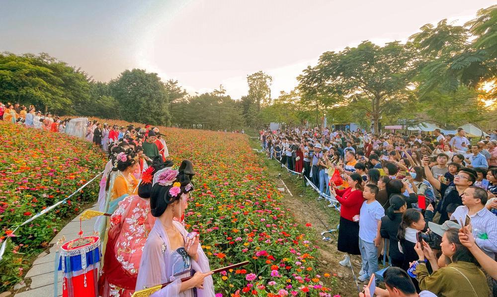 Lingnan: Beauty Beyond Borders | On December 11, the 2023 Zhongshan Xiaolan Chrysanthemum Fair concluded on a high note. The fair attracted a large number of tourists to enjoy the chrysanthemums in chrysanthemum varieties display, art performances, and culture displays. As one of the highlights of the fair, the Golden Earth Concert includes eight special activities, featuring various genres such as folk music, pop music, orchestral music, Cantonese opera, and salty water songs. Additionally, there were special sessions for children and enterprises, aiming to create a music feast for the public. A large-scale chrysanthemum banquet, the Zhongshan Hanfu Festival, and the chrysanthemum cheongsam show also gained a lot of popularity. #SplendidLingnan