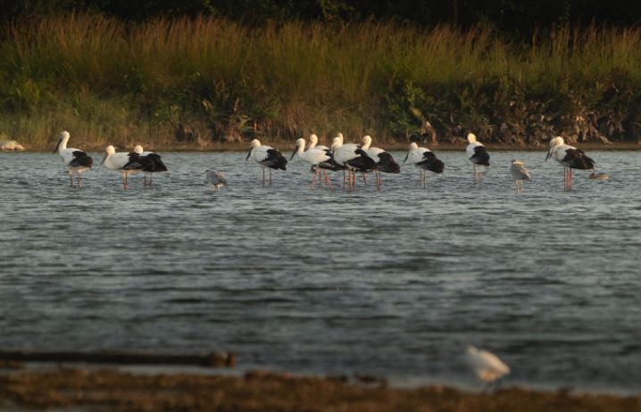 乘冬日暖阳,看候鸟南归。日前,17只东方白鹳在广东茂名现身的画面频频刷屏。茂名去年曾记录到单只的东方白鹳,但记录到成群东方白鹳还是首次,为广东今年候鸟迁徙季增添了一道亮丽风景。