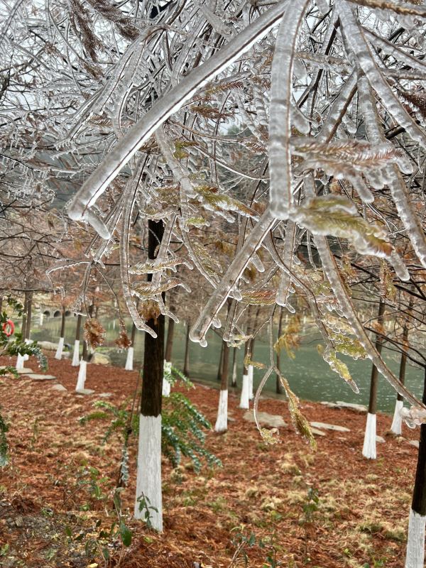 近日,一股寒潮级别的冷空气来访广东,为岭南大地换上了冬装。在韶关市新丰县的岭南红叶世界景区,色彩斑斓的落羽杉、红似火焰的枫叶、迎寒绽放的樱花,还有绿意盎然的茶丛,都披上了冰雪外套。人们纷纷走出家门,一起走进冰雪世界打卡,享受岭南的冬日浪漫。