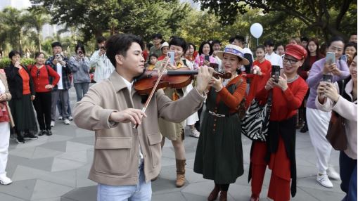 Lingnan: Beauty Beyond Borders | On the morning of 1 January, Shenzhen people gathered at the Bay Glory of OH Bay and Qianhai Stone Park in #Shenzhen to celebrate New Year's Day in the form of a flash mob and sing praises of the glorious development achievements of their great motherland. They re-adapted the song "I Love You, China" to the form of a #waltz as the overall style, adding a variety of instruments such as #violin and #cello to further reflect the diversity of the arts and show the characteristics of Shenzhen of science, technology, and innovation. In addition, the event invited the two actors of Shenzhen's original dance #drama, "Wing Chun", Chang Hongji, and Wang Yuanlin, to the scene and brought a wonderful performance for the public. #SplendidLingnan#NewYear #flashmob