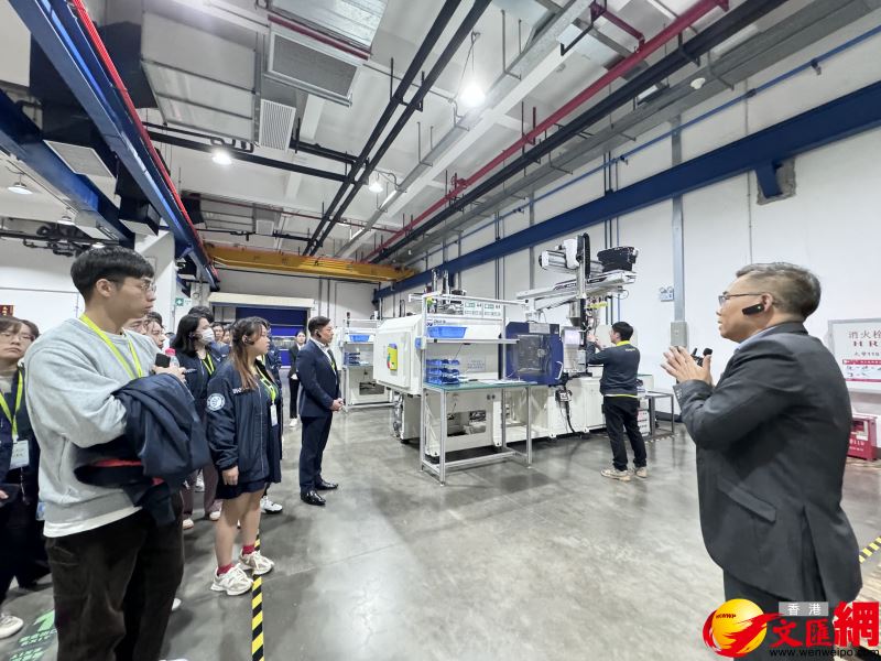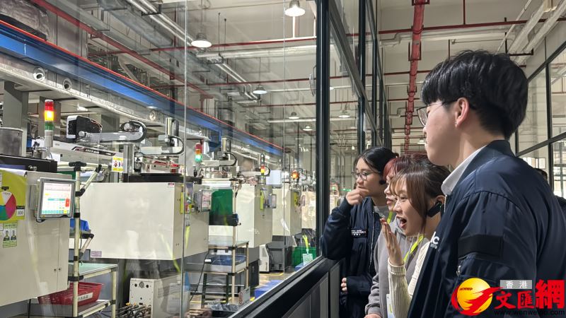 (香港文匯網記者黃寶儀)光潔明凈的車間內,幾乎看不到工人的身影,一排排的機械臂正在安靜地工作;而漆黑的健康品數字化智能化車間裏,只有作業機器在間歇地閃着光,AGV(自動導引車)在註塑機之間來回穿梭;在車間一側的實時看板,集合了自動排產、生產執行、設備與模具維護、品質管理、倉存管理等模塊的數字化管理系統,讓鴻利達實現了生產製造全流程的數字化。看到眼前顛覆想像的車間,「嘩!嘩!」的驚嘆此起彼伏,前來鴻利達精密組件(中山)有限公司的香港生產力促進局冬季實習生計劃的30多名學生都表示大開眼界,更直言看到灣區內地城市的「智造」現狀,即使以前沒計劃北上發展,現在都對到灣區內地九市發展「有小小心動」。