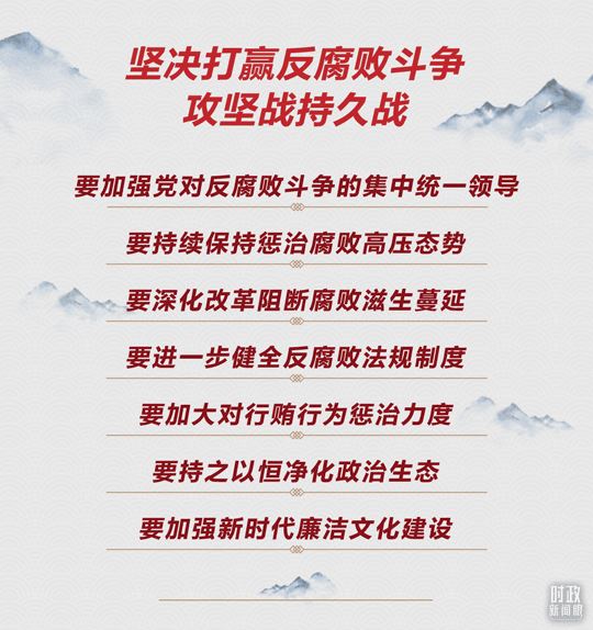 在会上,对于打赢反腐败斗争这场攻坚战持久战,总书记提出了“总的要求”:坚持一体推进不敢腐、不能腐、不想腐,深化标本兼治、系统施治,不断拓展反腐败斗争深度广度,对症下药、精准施治、多措并举,让反复发作的老问题逐渐减少,让新出现的问题难以蔓延,推动防范和治理腐败问题常态化、长效化。