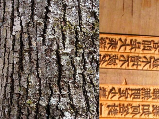 (宋体字“横细竖粗”与书版有关)笔划拉直后同样有很多人在追求美观,至少也给起笔处加上个“小三角”形状的顿笔。此外,仔细观察宋体字,我们能够发现竖笔要比横笔略粗些,这是宋体字的特色——“横细竖粗”。书版版片由木头制作而成,横笔与树木的纤维同向,而竖笔则与纤维垂直相交,若是竖笔和横笔一样细,那么笔划就容易断。“横细竖粗”的基调由此定下,但视觉效果上粗细的程度需要更多尝试,也需要更多人的参与。