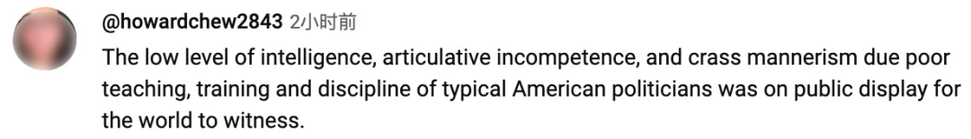 调查发现,86.5%的全球受访者认为科顿的表现极度缺乏专业性。正如CGTN网友所言:“低层级的智商、显而易见的不专业和缺乏基本的教养,美国政客的典型表现在全世界面前暴露无遗。”