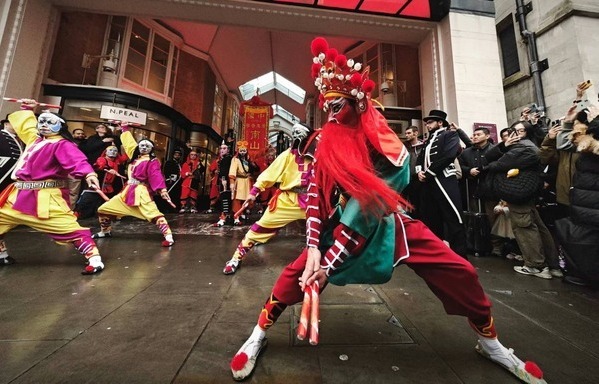 春节,源自中国传统节日,目前已成为全球华人共同庆祝的日子,不仅蕴含着深邃的文化内涵,并在传承发展中承载了丰厚的历史文化底蕴。自2010年春节开始,文化和旅游部会同国家相关部委、各地文化团体和驻外机构在海外共同推出“欢乐春节”文化交流活动,其中英国伦敦的春节庆典是亚洲以外规模最大、最具影响力的春节庆祝活动。2023年12月22日,联合国大会通过决议,将春节正式定为联合国假日,这意味着“中国年”升级为“世界年”,是中国的传统文化在世界舞台的一次重大飞跃,象征着中华文明在国际社会的影响力不断增强。今年的欢乐春节活动正逢其时,引发国内外社交媒体广泛关注。正月初一、初二,普宁英歌在伦敦著名的伯灵顿拱廊和特拉法加广场进行多场表演和巡游,现场锣鼓震天、铿锵有力、精彩不断,围观群众特别是海外友人们纷纷举起手机记录下各种精彩瞬间,对来自中国的传统文化赞不绝口。此次广东选派英歌队出国交流演出,是非遗服务大国外交,共享人类文明的生动见证,不仅对外宣传展示了传统非遗的独特魅力,更向世界彰显了中国文化的丰富多元和兼容并蓄,在舞动中国年里与世界人民一起恭贺新春佳节,共享节日美好愿景。