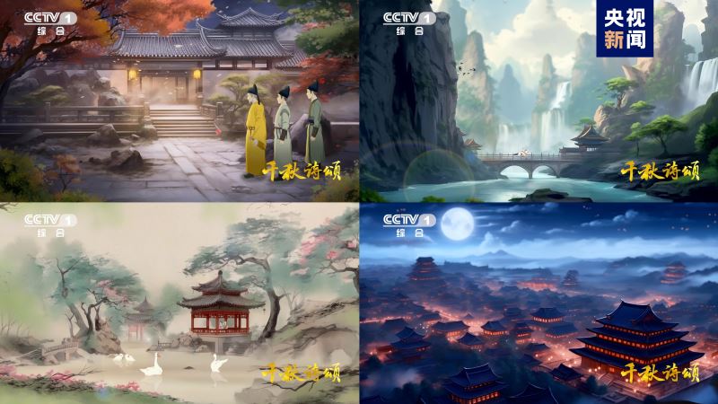 作为总台旗舰频道,综合频道(CCTV-1)一直是总台内容创新、科技创新的排头兵和示范区。频道牵头策划的《千秋诗颂》是国内首部以我国自主AIGC技术支撑制作的系列动画片。节目综合运用可控图像生成、人物动态生成、文生视频等最新技术成果,支持了从美术设计到动效生成,再到后期成片的各个环节,实现了“有声言诗和无声画意”的有机融合,是技术和艺术结合的典范。受众可全方位沉浸在古诗词悠远的意境中,感受独属于中国诗词的浪漫。