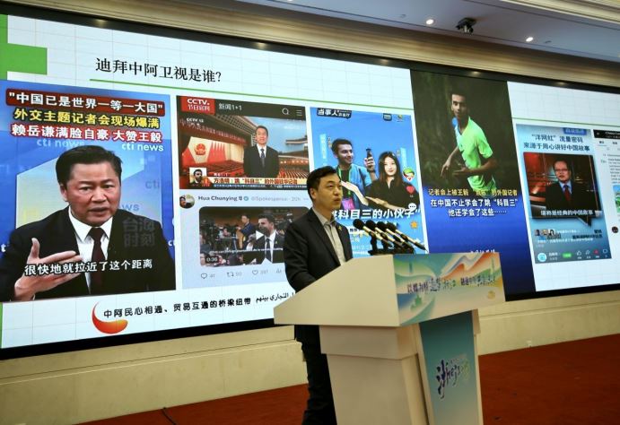 迪拜中阿卫视台长杨威分享对外传播案例,包括由迪拜中阿卫视与中国新闻社联合制作的以传播中国优秀文化为主题的系列专题纪录片《文化中国》,节目中有闻名世界的中国功夫展示,又有非遗传承的故事,展现了少数民族的风俗风情,在伊拉克、阿尔及利亚、沙特等国多次出圈。