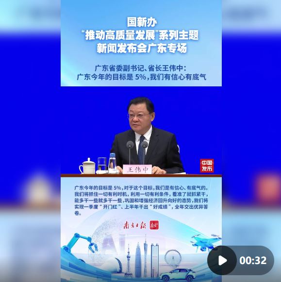 王伟中:广东今年5%的经济增长目标,我们有信心有底气