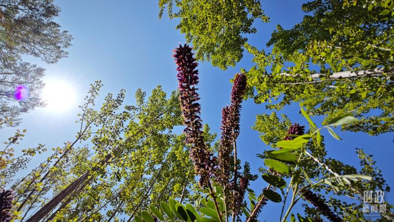 △内蒙古巴彦淖尔临河区国营新华林场内种植的紫穗槐和小叶杨。(总台央视记者许永松拍摄)