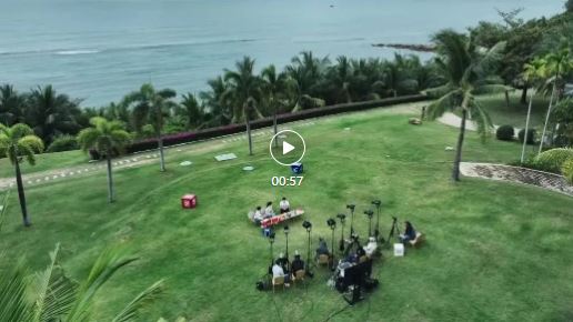海边的沙滩上,草坪的椰树旁,转角楼梯的鸡蛋花下……这些景致都成了一条条融媒体视频里绝好的采访背景、自然的空镜素材。十个人的小团队、九位嘉宾,仅用一天时间就以轻量化装备高效完成节目录制。椰子树旁的演播厅还能打开多少节目制播的可能性?我们继续期待。