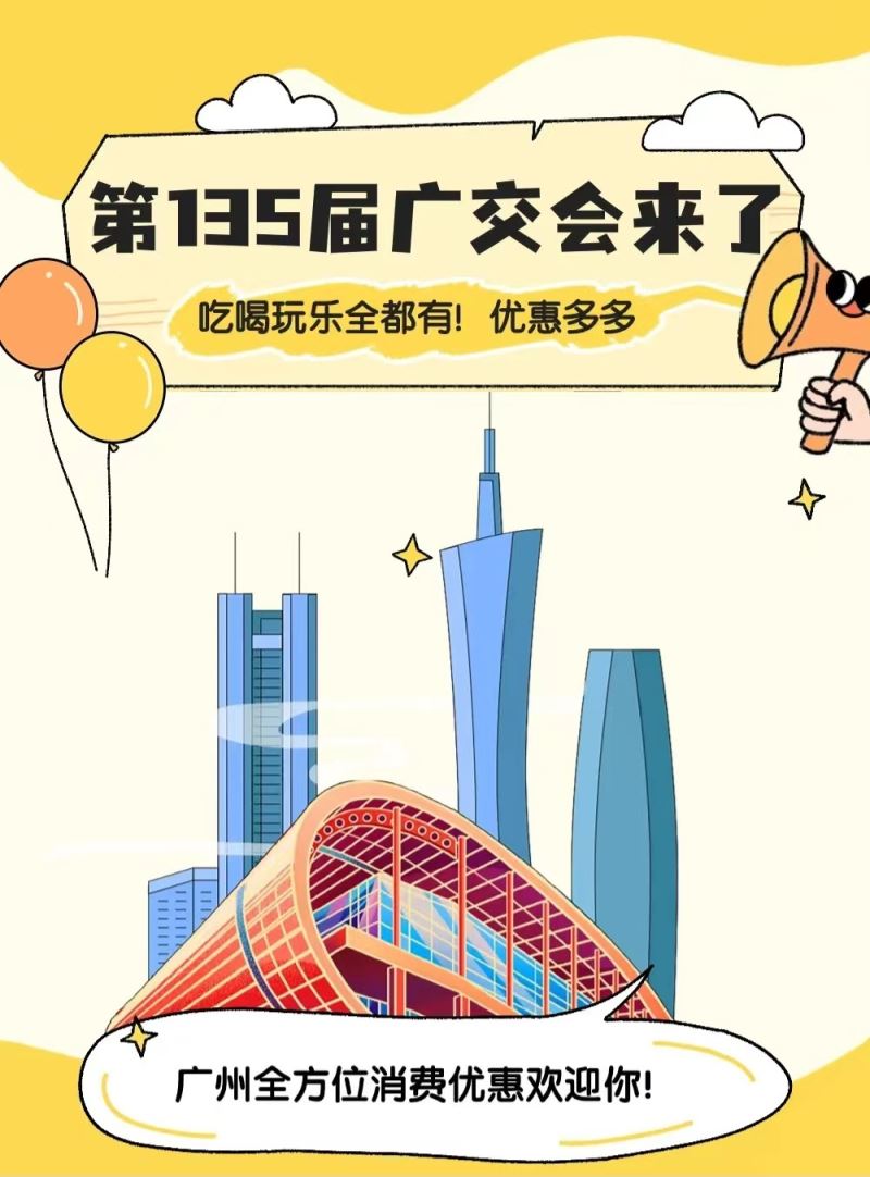 为满足参展商和采购商消费需求,展现“千年商都”热情好客、近悦远来的消费底蕴,广州市商务局统筹各区资源和市场主体力量,投入超5000万元促销资源,打造“广交会有礼”主题活动,推出超150场优惠活动,在购物、餐饮、住宿、出行等主要消费场景面向第135届广交会的来宾和客商推出优惠福利,优化多种支付环境,助力来宾畅购、畅享广州。