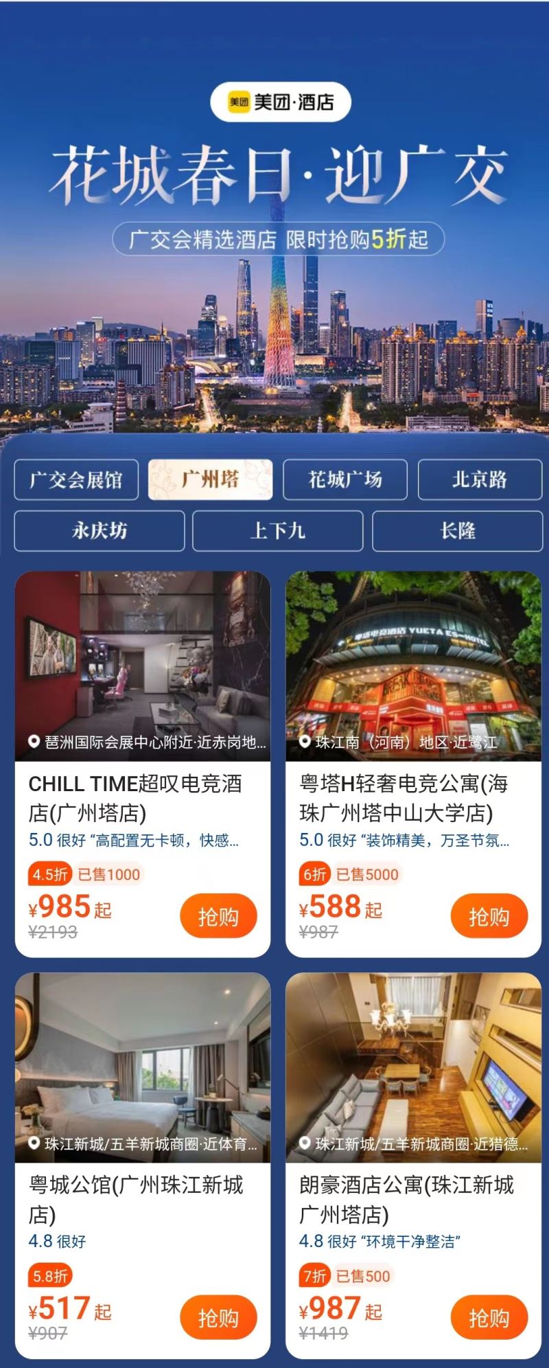 其中,银联围绕广州中西特色美食集聚区、品牌餐厅、酒店等,推出5折享超值商务餐、1元购寻味广州餐饮老字号、夜探羊城深夜食堂领立减等活动;美团推出精选酒店5折抢购,打造本地百家好店美食游乐路线。